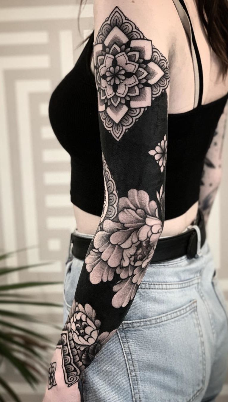Have a fading colorful tattoo? Throw a bird, skull or any other design you want over it in black ink and you’ve just discovered the blast over style. Let’s face it, tattoos are forever but your perception of the world is always changing. If you’ve got a wonky piece of ink from the past but want to hold onto it due to a significant meaning, a blast over tattoo is the perfect solution. Sure, the old design won’t be one-hundred percent visible but it will still poke on through. While technically a cover-up tattoo style, the true invention of blast over ink comes from those who have too much body art but simply want ink. When sace is short, blast over tattoos are a great way to add another layer of artwork over an already full canvas of skin.